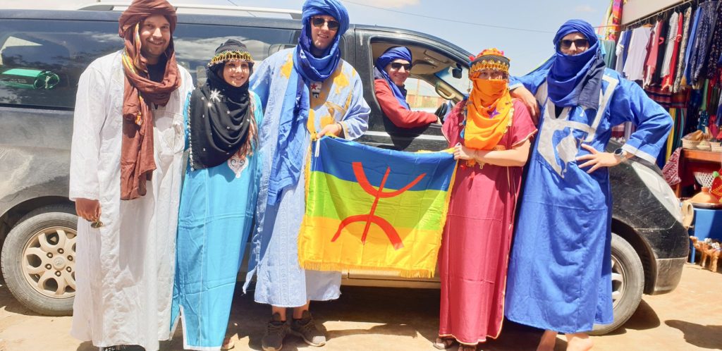 Nastavivši prema pustinji prati nas lijep krajolik, ali loše vrijeme je i dalje tu. Sa planine se spuštamo u dolinu i nastavljamo ravnicom. Uživam u beskonačno ravnim cestama kao iz filmova dok putem susrećemo magarce i deve. Sjedim naprijed dok svi iza mene spavaju, slušam glazbu i razmišljam kako sam već pun dojmova, a da nas ono najbolje tek čeka. Zaustavljamo se u nekom gradiću, tik uz cestu i tu nas na nekakvom štandu oblače u njihovu narodnu nošnju. Naravno, izgledamo smješno i vjerojatno nam se svi smiju iza ugla, uključujući Mustafu.