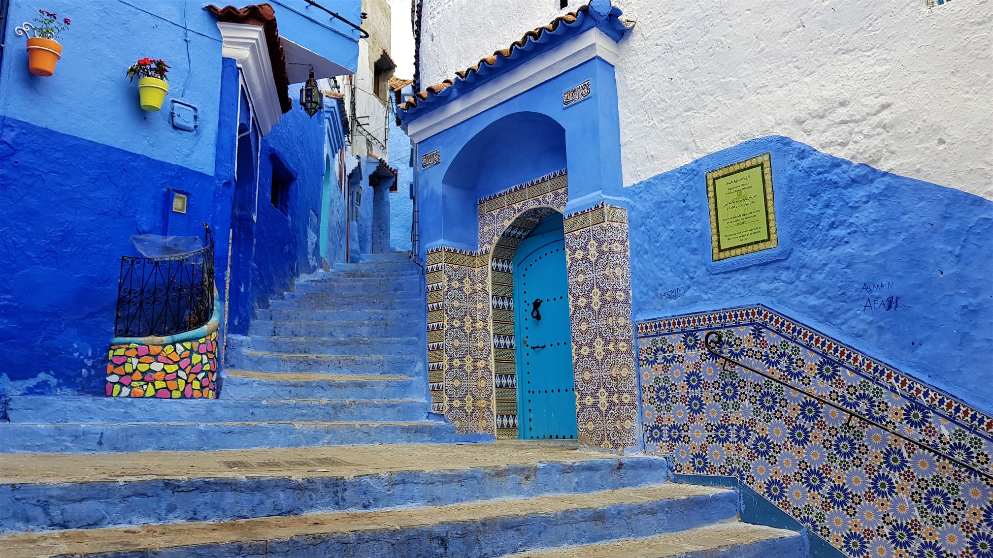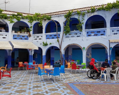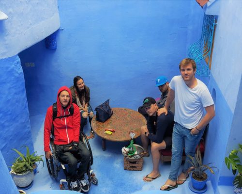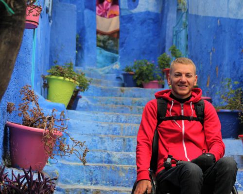 Dolaskom u naš riad, ispred vrata nas dočekuje simpatični, brkati i nižeg rasta gospodin. Vidjevši mene, govori nam „You are crazy, Chefchaouen with wheelchair“, očito fasciniran našim dolaskom s kolicima, s obzirom na to da se grad nalazi na brdu i prepun je uzbrdica, nizbrdica i stepenica.